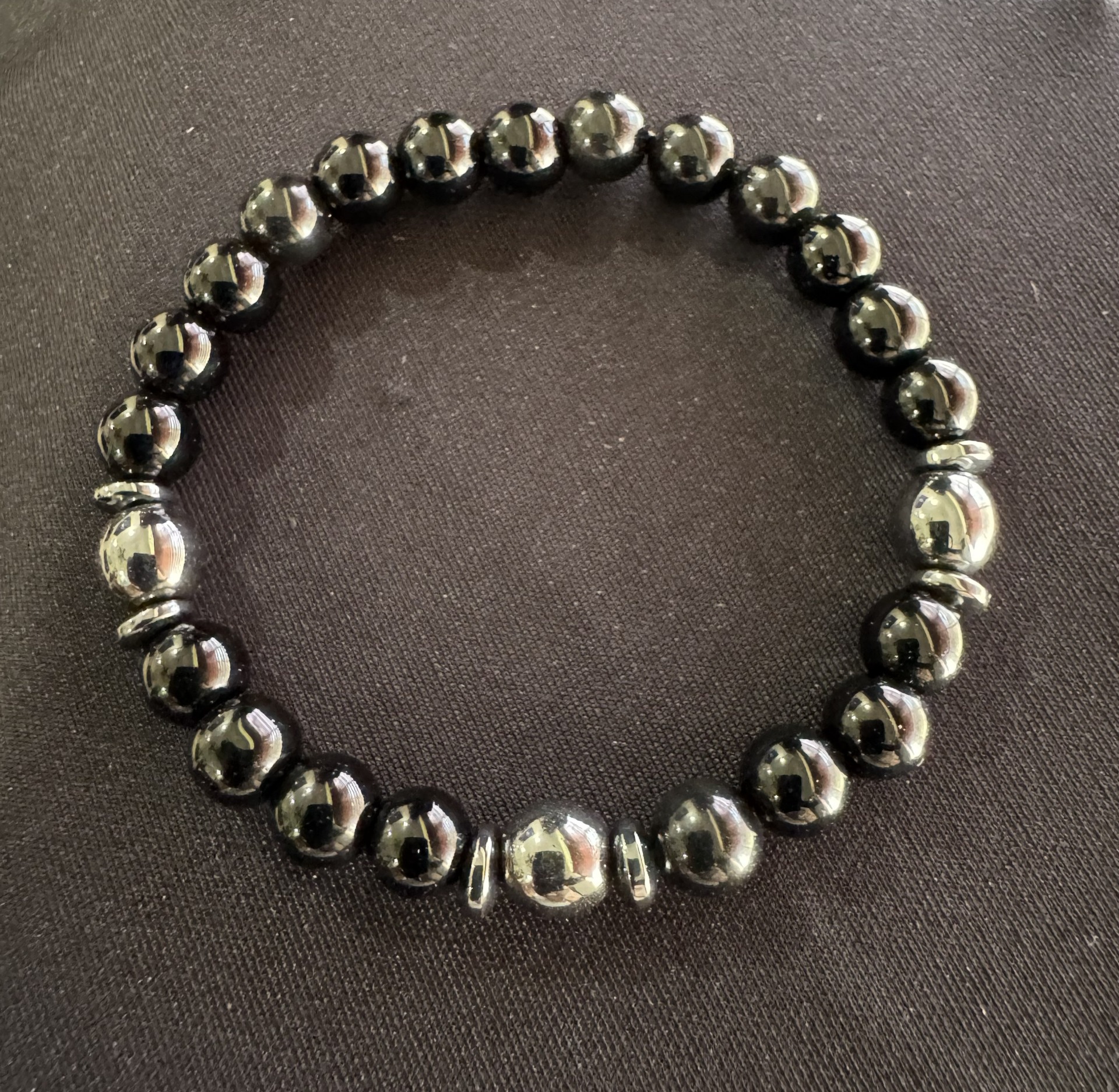 This stretch bracelet is crafted with natural black onyx and hematite gemstones.