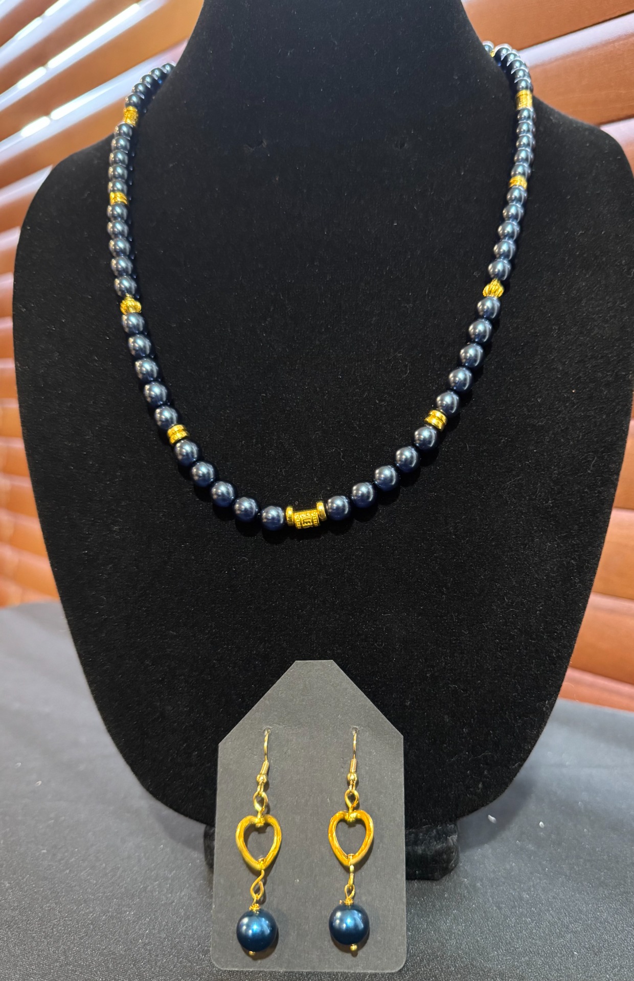 Add a touch of timeless elegance to your look with this beautifully coordinated jewelry set, designed with deep blue translucent glass beads paired with soft satin‑luster accents. The interplay of clarity and sheen creates a luminous effect, giving the necklace and earrings a refined, sophisticated glow.